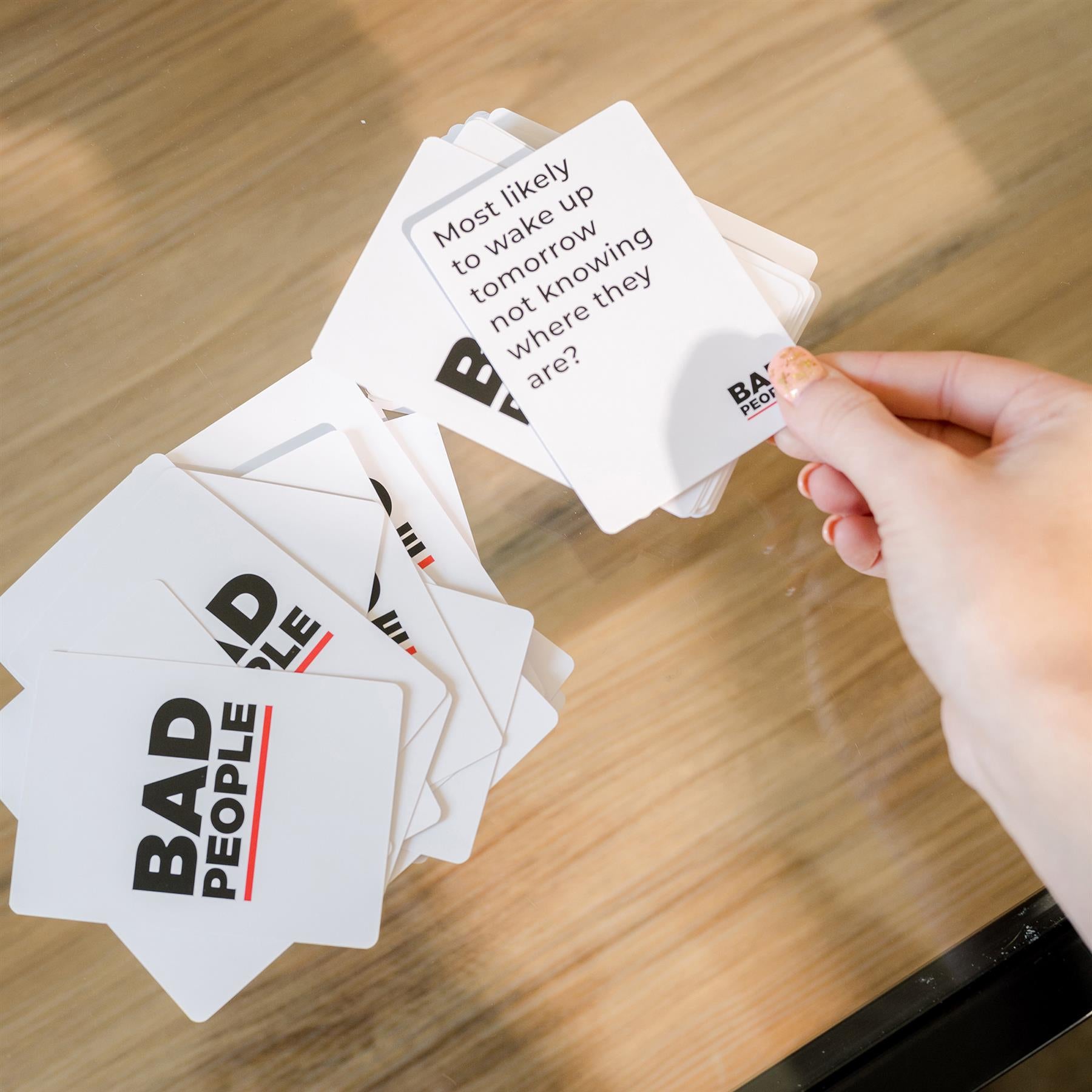 - EASY TO LEARN RULES: 320 Hilarious Cards, 10 Player Identity Cards (up to 10 people can play at once) 100 Voting Cards, 10 Double Down Cards. Bad People is the ultimate party game experience.