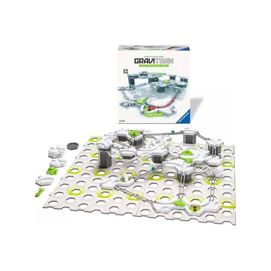 With the GraviTrax Starter-Set, the spirit of invention is unleashed and everyone can dive straight into the huge, endlessly expandable marble run universe. With over 120 parts and a variety of building stones, nothing stands in the way of surprising and action-packed building fun. The example tracks and instructions provide a playful introduction to the GraviTrax universe and encourage creativity for building your own tracks.