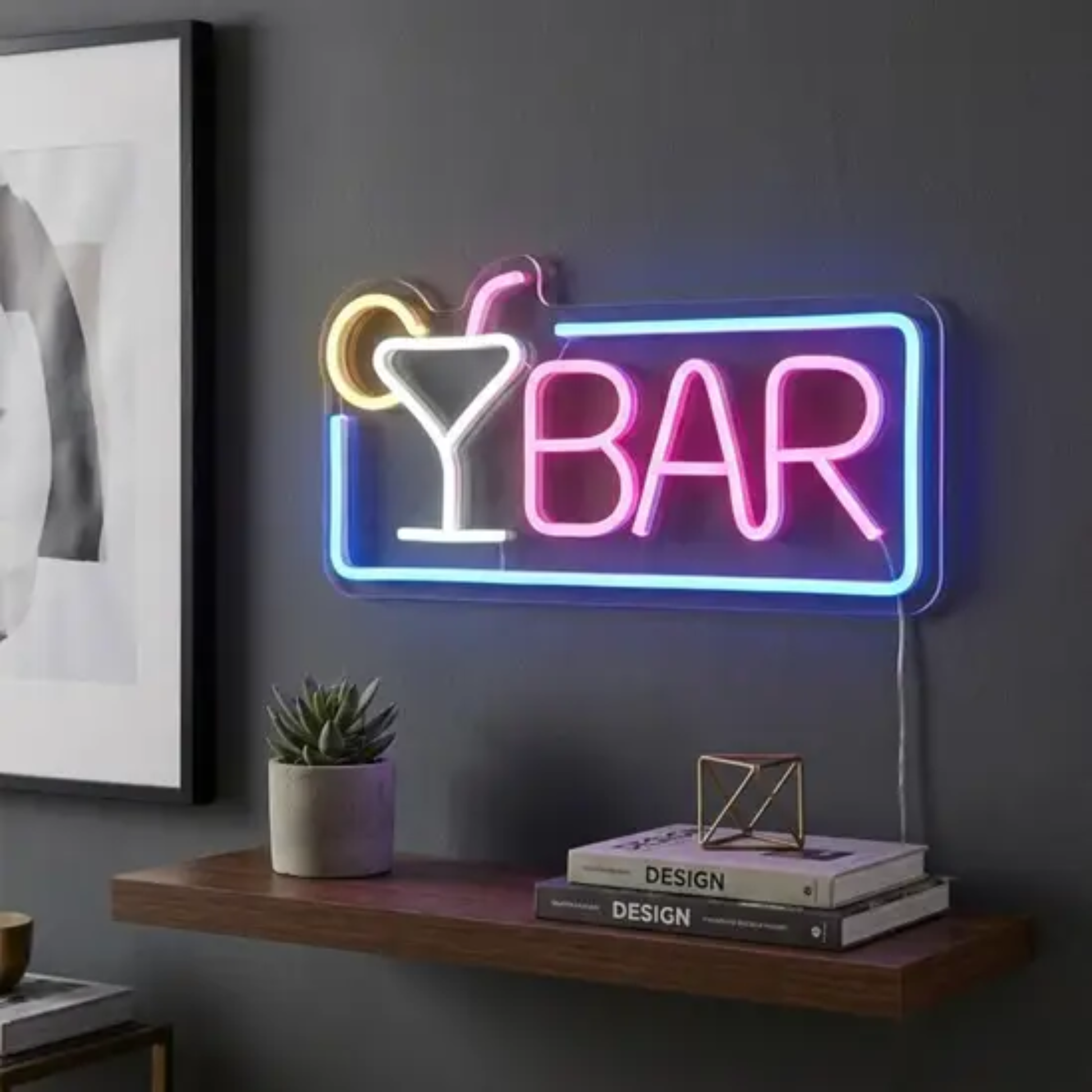 Add bold character and a vibrant glow to your space with the Bar Sign Neon Wall Light. Designed as both a decorative feature and ambient lighting, this eye-catching sign brings personality to home bars, entertainment areas or social spaces. The Manhattan Gift Company Bar Sign is not just a functional piece, but also a versatile decor item that adds character and personality to any room or entertainment area.