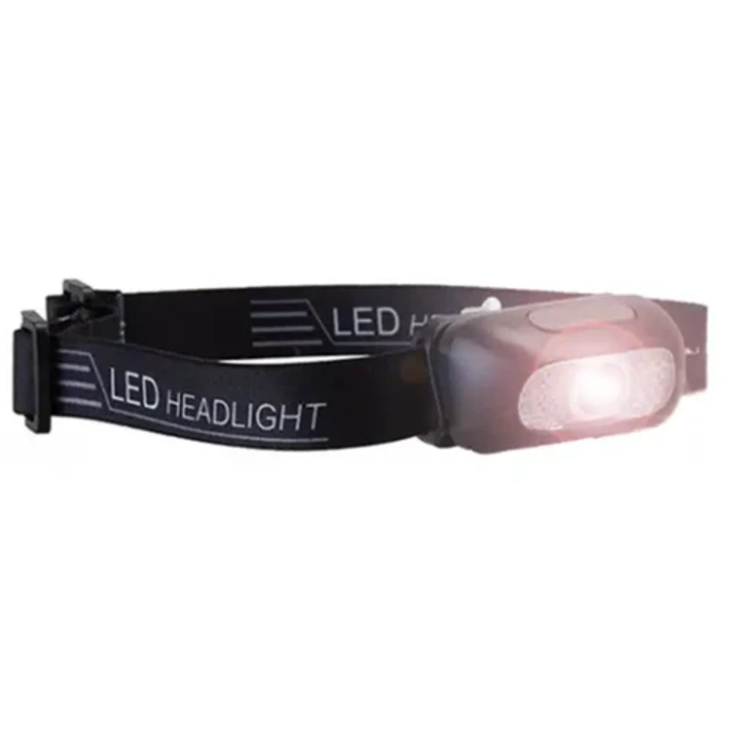 Lightweight rechargeable head torch with adjustable head strap. With red night vision and red flash.