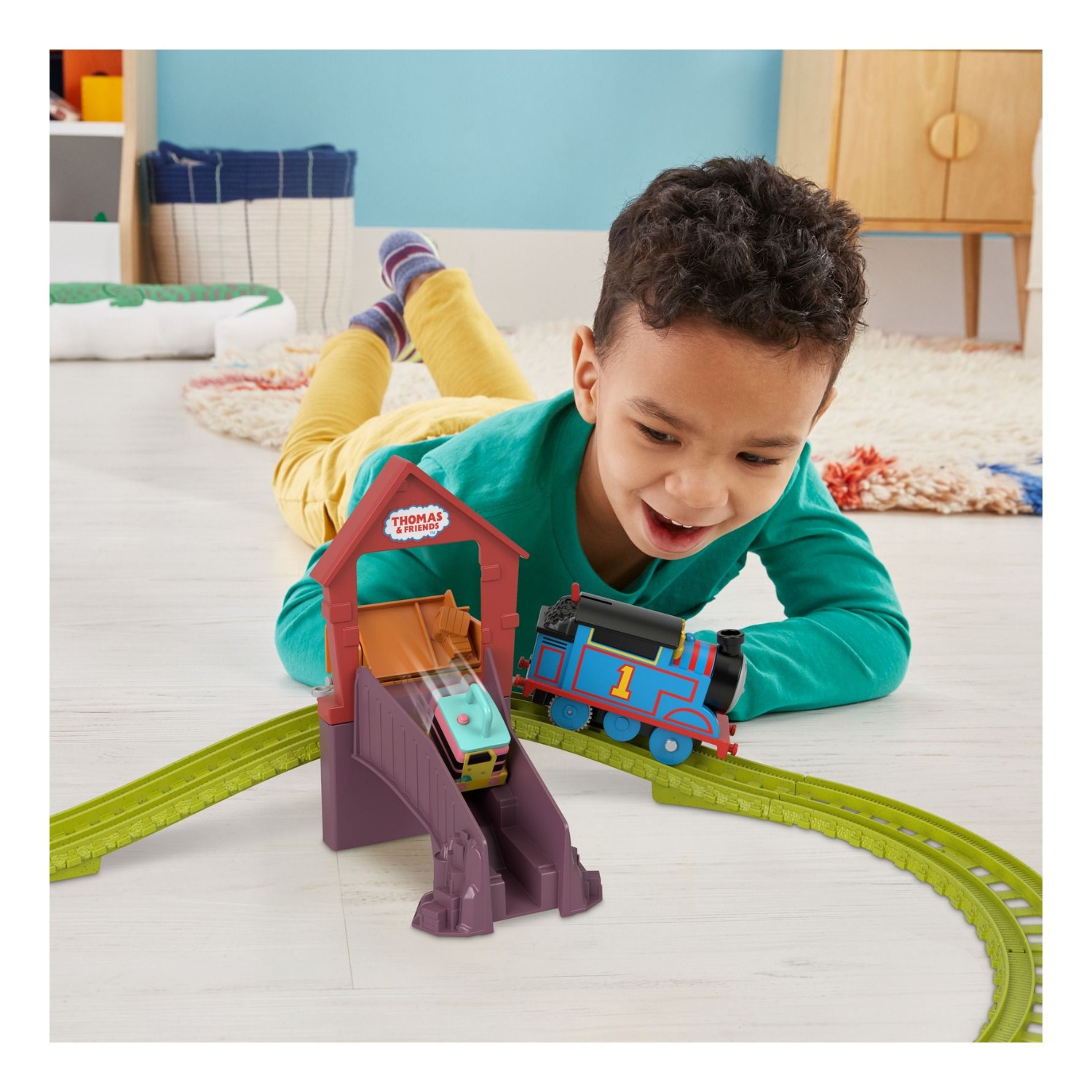 • Kids can use Carly the Crane’s hook for loading and unloading cargo into Thomas’s cargo car